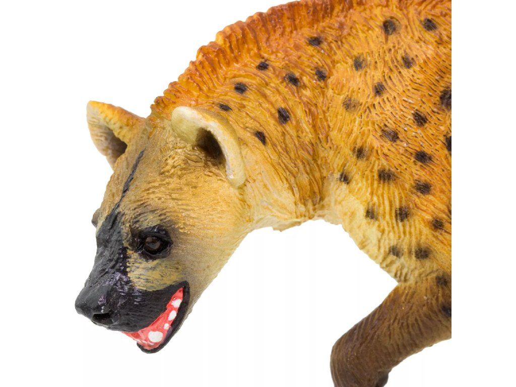 Figurka hyeny. Hyeny loví v matriarchálních smečkách a mají jedno z nejsilnějších kousnutí ve světě zvířat. Pokud je smečka dostatečně velká, dovolí si obtěžovat i lvy, aby dostaly jejich kořist.