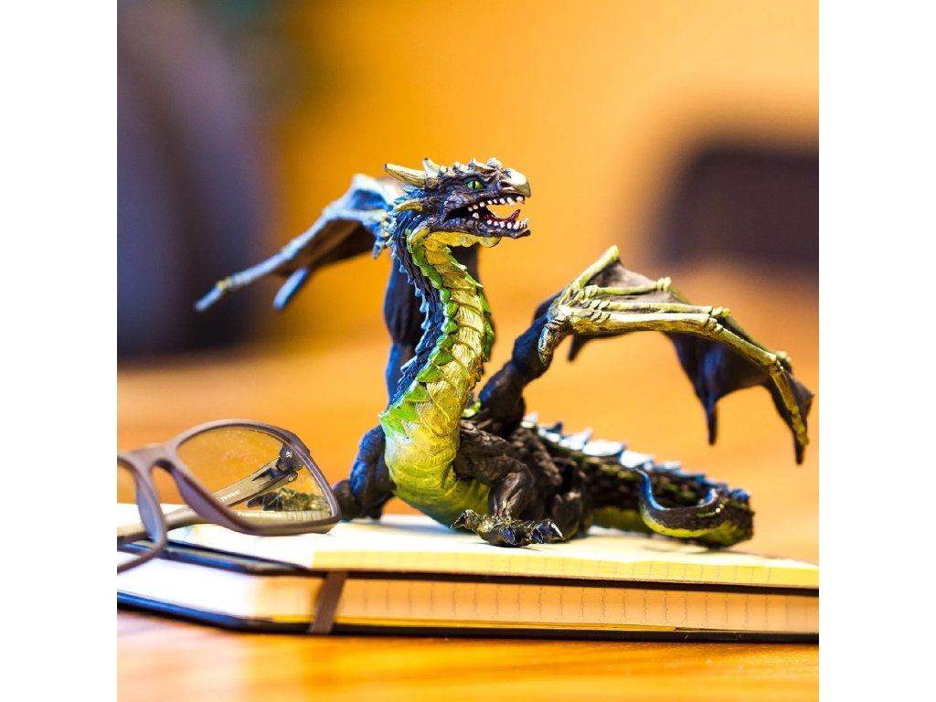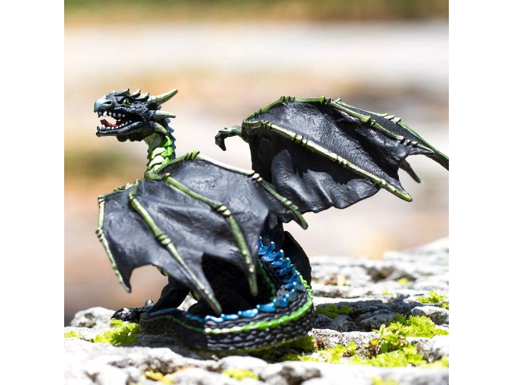 Figurka Mlžného draka, který se plíží všude tam, kde může hustá mlha skrýt jeho pohyby. Kostnatá křídla, kůže černá jako noc a děsivé zvýrazňující barvy nahánění z této figurky hrůzu na pohled. Zdá se, že tento drak se zhmotňuje z mlhy, která mu dodává energii.