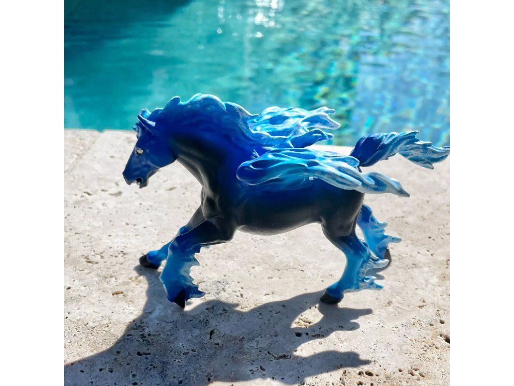 Figurka Modrého Pyroise, který je v řecké mytologii jedním ze čtyř nesmrtelných koní, kteří táhli vůz slunečního boha Hélia.