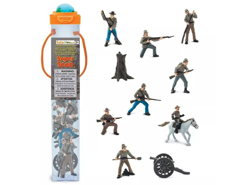 Jste připraveni na trochu historie? Tato sada miniaturních vojáků armády Konfederace, bojujících v občanské válce umožňuje dětem dozvědět se o tomto důležitém konfliktu praktickým a pestrým přístupem. Skvělé pro školní projekty!