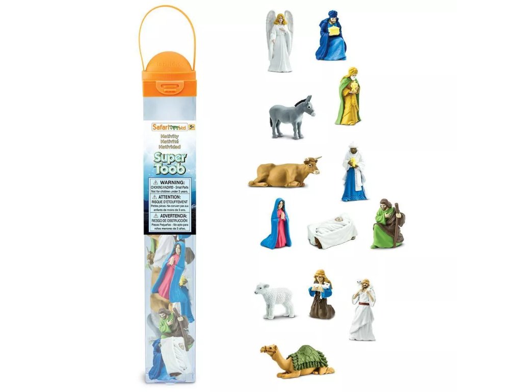 Prožijte kouzlo Vánoc společně s touto tubou, obsahující figurky v Betlému. V sadě naleznete kromě Ježíška také Marii, Josefa, anděla Gabriela, pastýře, ovci, osla, vola, velblouda a Tři krále.