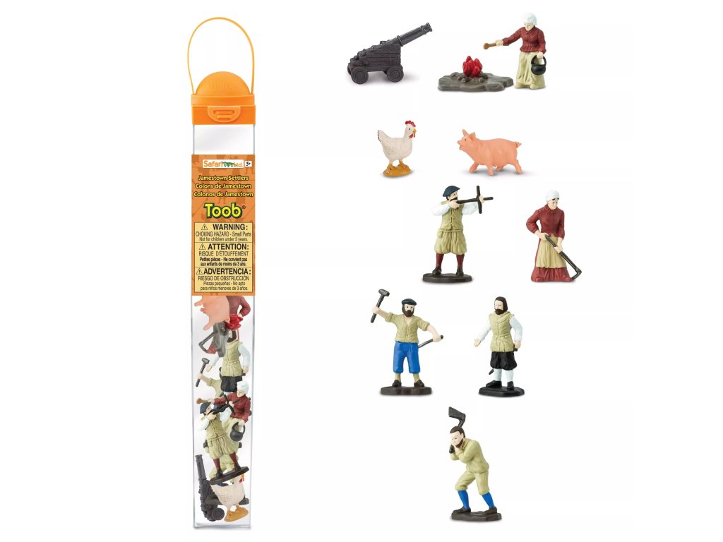 Tuba Osadníci z Jamestownu obsahuje 12 figurek o velikosti 4-7,5 cm a zahrnuje následující repliky: loď, prase, kuře, kuchařka, ohniště, kanón, osadník s mušketou, osadník se sekyrou, John Smith (vůdce osadníků), kovář, zahradnice a námořník.