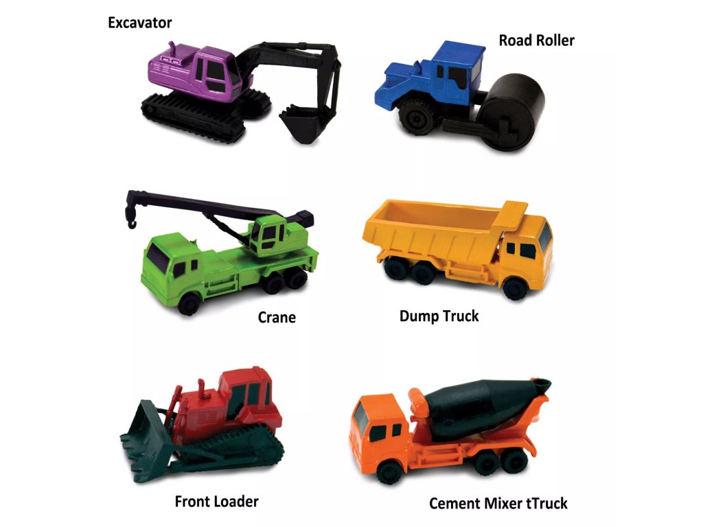 Tuba - Stavební auta obsahuje celkem 6 figurek zářivých a barevných miniaturních stavebních vozidel.