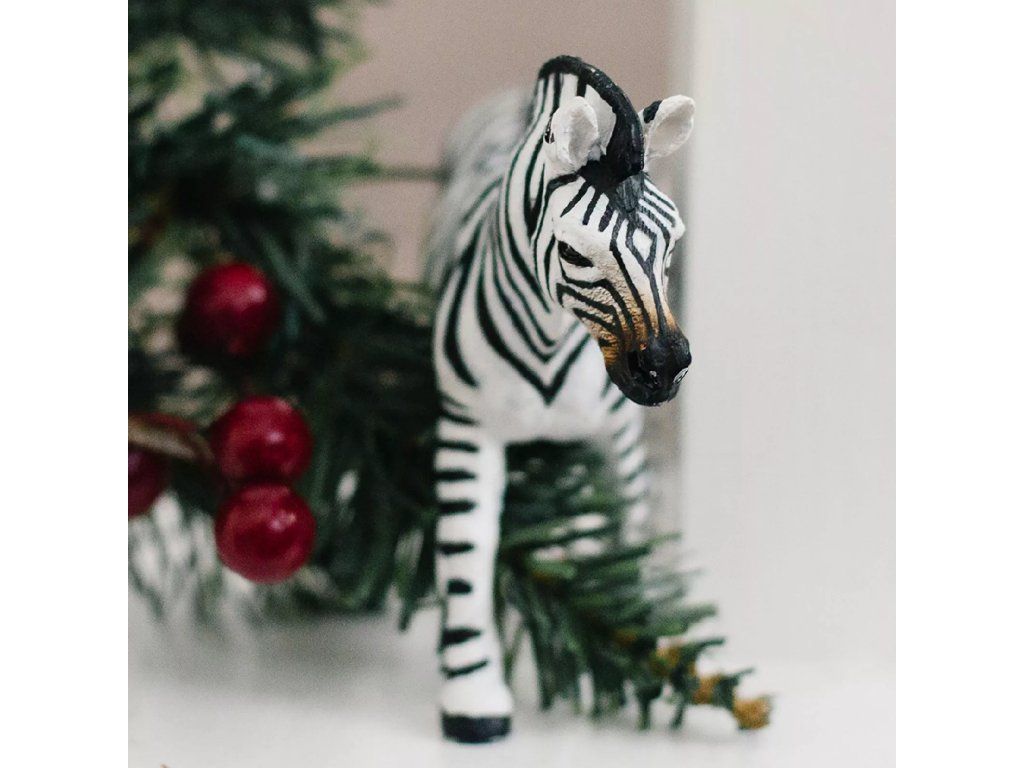 Figurka zebry stepní, nejrozšířenější a nejběžněji se vyskytující zebry ze tří druhů zeber v Africe. Z tohoto důvodu je také známá jako zebra obecná. Jako všechny druhy zeber má i zebra stepní na srsti výrazný černobílý pruhovaný vzor.