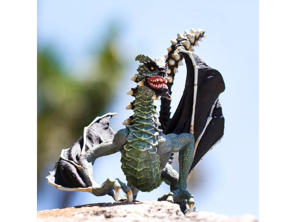Figurka Zlověstného draka, zlomyslné bestie s neuvěřitelně dlouhými drápy, obrněnými šupinami a strašlivou povahou! Díky netopýřím křídlům a ocasu připomínajícím kyj si s tímto drakem není radno zahrávat.