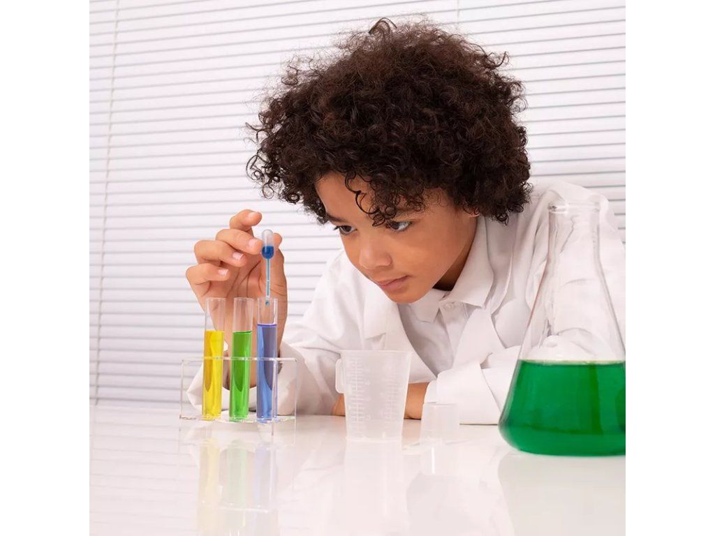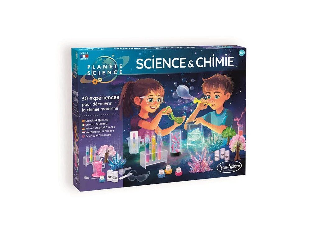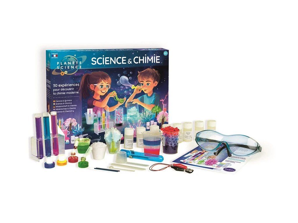 Vzdělávací sada "Chemická laboratoř" vám umožní vyrábět gely, krystaly, vodí perly, umělý sníh, nebo bubliny, ale také objevovat šumivost a chromatograii. Všechny experimenty budete provádět pomocí netoxických produktů a manipulace s nimi bude probíhat za studena.