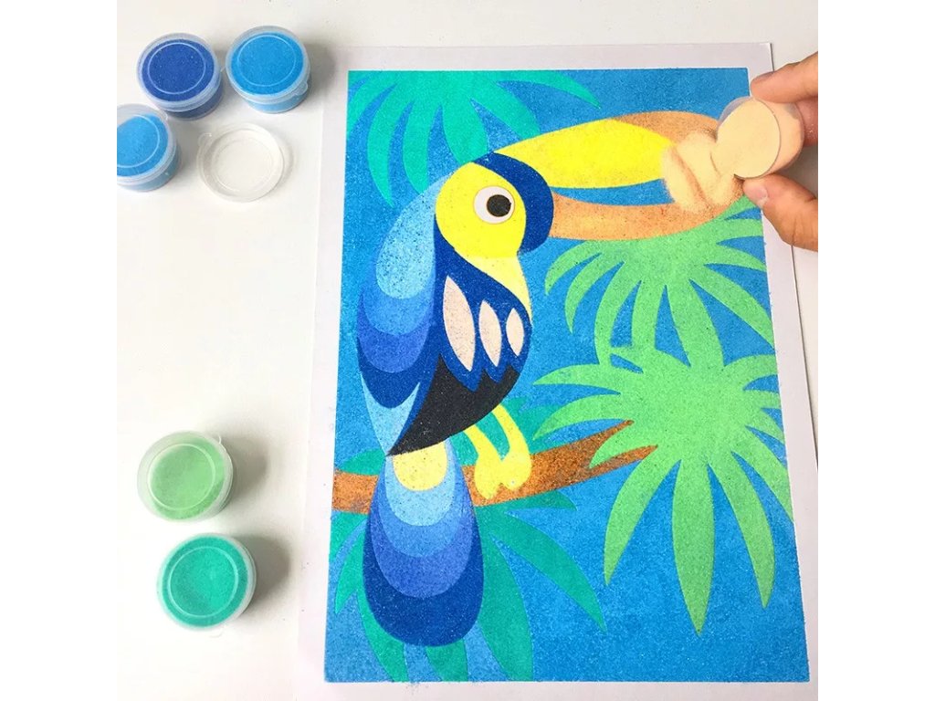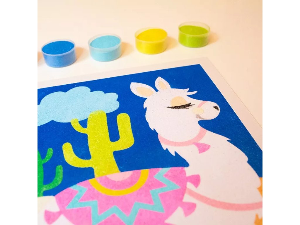 S touto sadou mohou oživit nádherná jihoamerická zvířata i ti nejmenší, a to bez svého zašpinění. Vyberte si obrázek některého z nabízených zvířat a můžete začít. Pískové tvoření potěší všechny děti, které mají rádi kreativní tvorbu, malování, a nebo pouze chtějí vyzkoušet něco nového. Je to snadné, stačí odlepit předlepené povrchy jednotlivých obrázků a posypat je různými barvami písku.