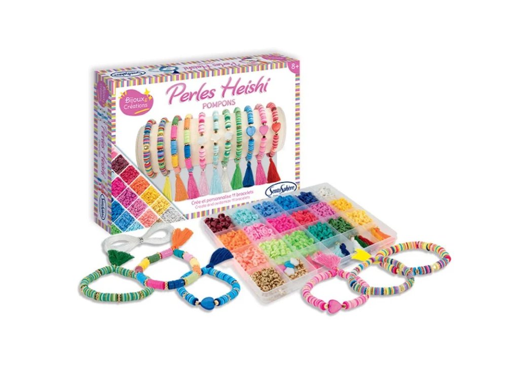 V sadě na vás čeká více než 1400 korálků heishi v 18 barvách na výrobu více než 10 náramků ozdobených krásnými zlatými a perleťovými korálky a 10 bambulkami. Skvělá aktivita pro rozvoj jemné motoriky a koordinace oko-ruka, trpělivosti, logického uvažování a kreativního myšlení.