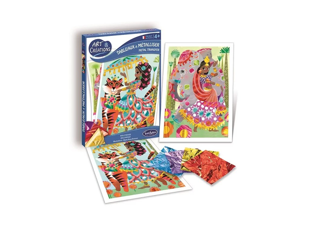 Pomocí lesklých papírků ozdobte špičkami prstů oblečení nádherných princezen z Bollywoodu. Chytrá technika, která umožňuje dětem přenášet části papírků na lepené a předřezané listy, nadchne malé i velké.