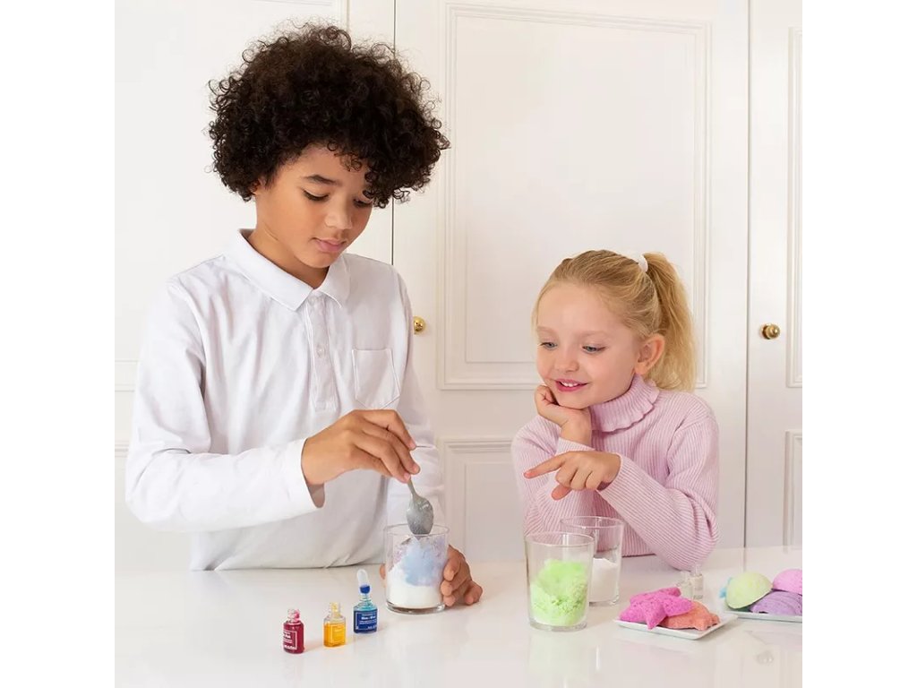 Je to snadné. Smíchejte podle návodu různé kosmetické přísady, vyberte si barvy a poté zkomprimujte své výtvory do formy dle vašeho výběru. Tato kreativní činnost s jednoduchou a především bezpečnou a zábavnou manipulací, umožní všem věkovým kategoriím objevit tajemství výroby kosmetických výrobků.