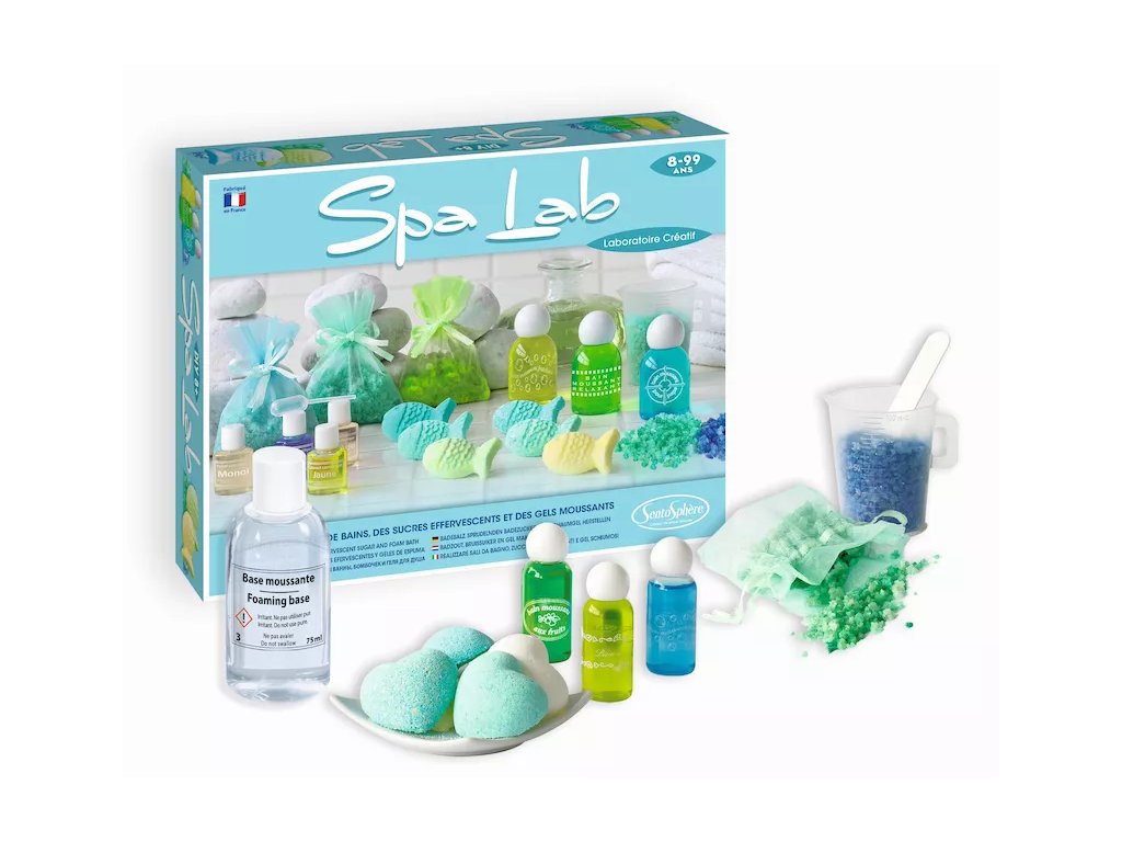 S touto laboratoří si zvládnete vyrobit relaxační, lahodně vonné koupelové soli, vytvořit superpěnivé barevné sprchové gely a pěny do koupele. Jednotlivé operace jsou velmi snadné a bezpečné, takže umožňují dětem nejen experimentovat a zkoušet nové věci, ale především zažít spoustu zábavy a rozvíjet kreativitu.