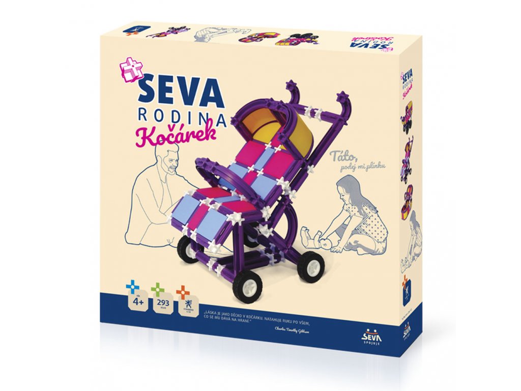"Tati, přebalíme mimčo a pojedeme s ním na výlet." Se stavebnicí SEVA RODINA - Kočárek můžete sestavit kočárky nebo autosedačku pro oblíbeného plyšáka. A nemusíte skládat pouze to. Ve stavebnici SEVA se fantazii meze nekladou.