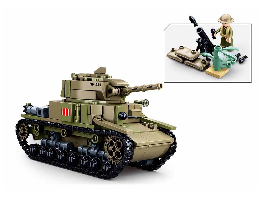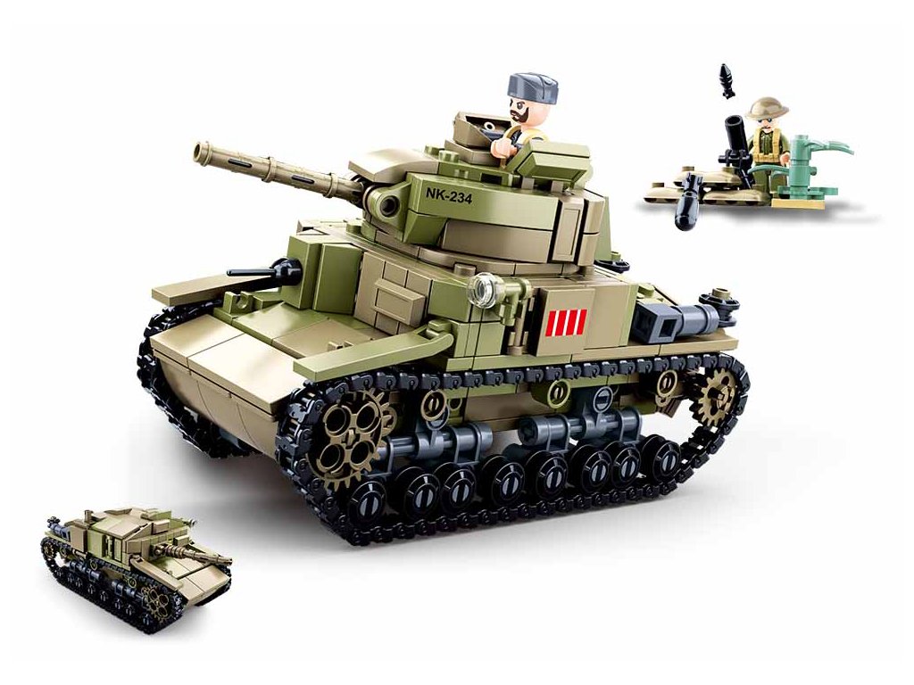 Útočný italský pásový tank lze sestavit ve dvou variantách a o to víc si vychutnat variabilitu hry. Minometné stanoviště rozšiřuje herní možnosti a doplňuje tak schopnosti této jednotky. Inovativní stavebnice Sluban je možno kombinovat s podobnými stavebnicemi mnoha dalších významných výrobců. Jsou vyráběny z kvalitního, nezávadného a odolného ABS plastu. Každá stavebnice je opatřena návodem k sestavení a balena v pestře potištěné papírové krabičce. Hlavní vlastnosti: 463 dílků, 2 figurkystřední obtížnostinovativní figurky s otáčivými i výkyvnými částmi tělkompatibilní se stavebnicemi dalších výrobců