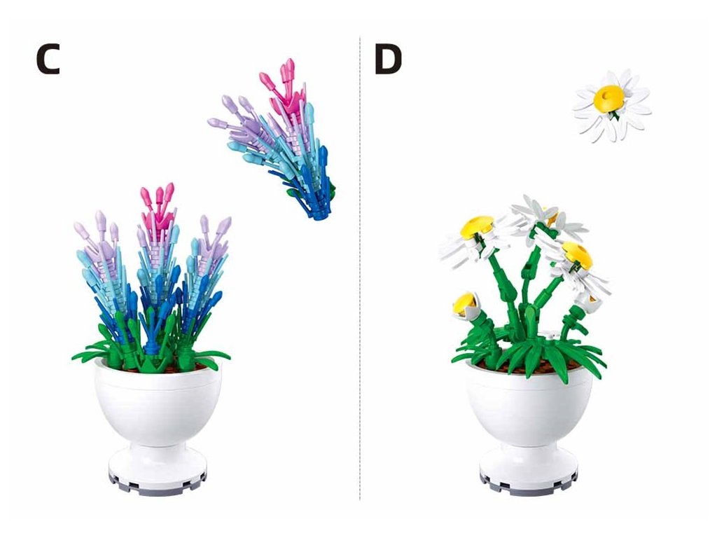Květiny z řady Flowers sice nevoní, ale uchvátí Vás svou barevností. A navíc nikdy neuvadnou! Vytvořte si krásnou dekoraci skládající se z 6 květin v květináčích, které se budou vyjímat na okenním parapetu nebo polici. Potěší Vás růže, levandule, sedmikráska, lotos, pivoňka a tulipán. Inovativní stavebnice Sluban je možno kombinovat s podobnými stavebnicemi mnoha dalších významných výrobců. Jsou vyráběny z kvalitního, nezávadného a odolného ABS plastu. Každá stavebnice je opatřena návodem k sestavení a balena v pestře potištěné papírové krabičce. Hlavní vlastnosti: 6 květin v květináčích: růže, levandule, sedmikráska, lotos, pivoňka, tulipánvhodné jako dárek nebo dekoracekompatibilní se stavebnicemi dalších výrobců