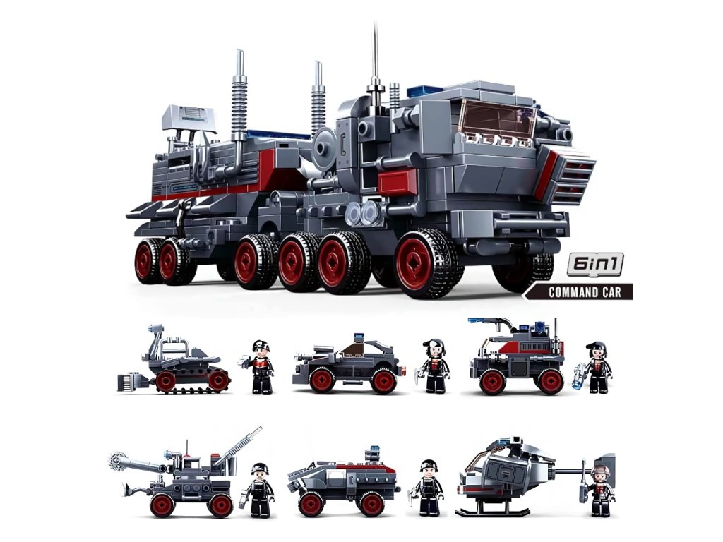 Série samostatných ministavebnic vojenské techniky, jejichž kompletací vznikne možnost sestavit velký ucelený model velitelského vozidla. Inovativní stavebnice Sluban je možno kombinovat s podobnými stavebnicemi mnoha dalších významných výrobců. Jsou vyráběny z kvalitního, nezávadného a odolného ABS plastu. Každá stavebnice je opatřena návodem k sestavení a balena v pestře potištěné papírové krabičce. Hlavní vlastnosti:1247 dílků a 6 figurek celkem, 78–107 dílků a 1 figurka jednotlivěstřední obtížnost2 úrovně složitosti, kompletací série lze sestavit velký modelinovativní figurky s otáčivými i výkyvnými částmi tělkompatibilní se stavebnicemi dalších výrobců
