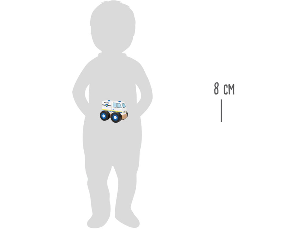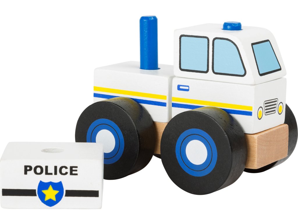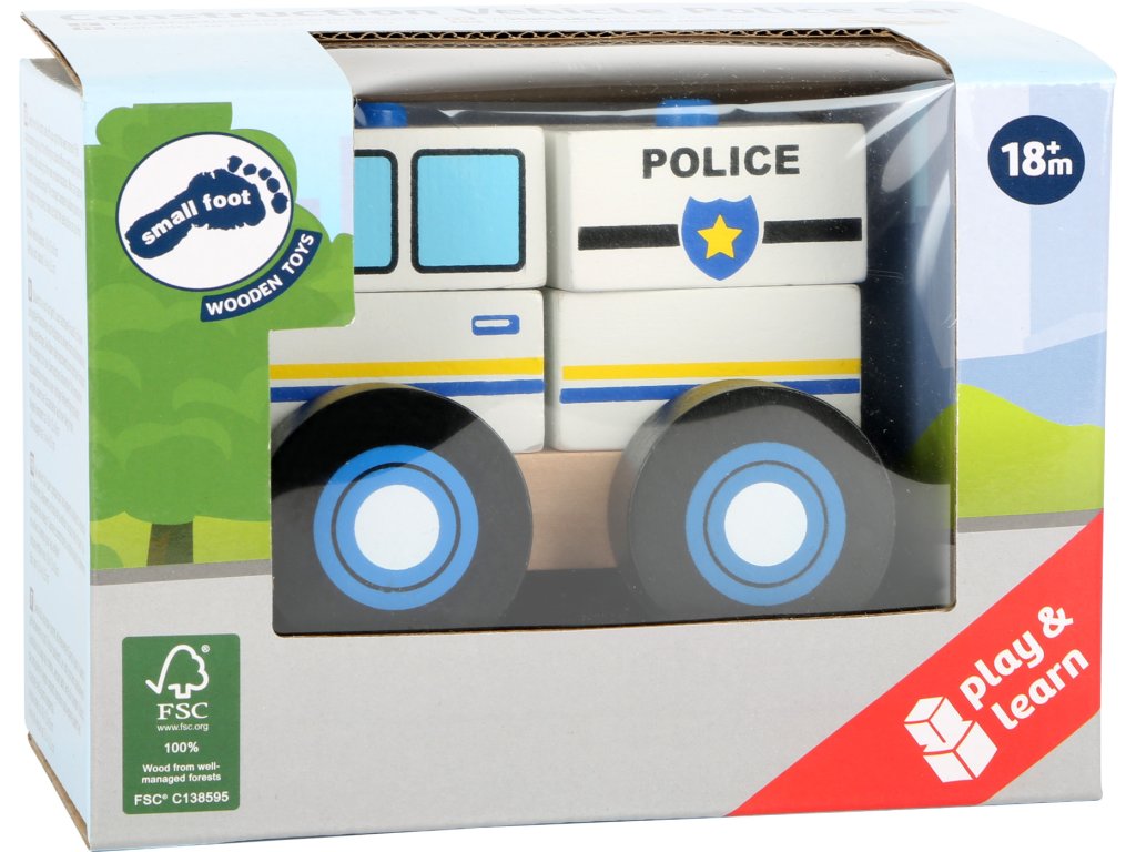 Zapněte maják a vyjeďte na další misi! Skládací hračka je vyrobena ze 100% FSC® dřeva. Stačí poskládat barevné kostky ve správném pořadí a policejní auto může vyjet. Základna s koly má 2 tyčinky, na kterých kostky drží. Kdo polapí překvapeného zloděje jako první? S touto hračkou si děti hravě procvičí soustředěnost a logické myšlení. Zábava garantována! Hlavní vlastnosti: skládačka na kolečkách100% FSC® dřevo Značka a certifikát FSC® (Forest Stewardship Council) zaručuje, že dřevo, ze kterého byl produkt vyroben, nebylo vytěženo nelegálně a pochází z lesů obhospodařovaných šetrným či přírodě blízkým způsobem, ve kterém jsou dodržovány přísné environmentální a sociální požadavky. Značka FSC® na výrobku znamená, že svým nákupem pomáháte chránit lesy a podporujete šetrné, odpovědné či přírodě blízké hospodaření, díky kterému jsou naše lesy stabilnější, zdravější, mají přirozenou druhovou skladbu a lépe odolávají negativním následkům klimatických změn.