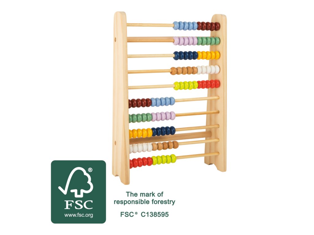 Jasně barevnými korálky v deseti řadách lze pohybovat tam a zpět. Skvělý dárek pro všechny (začínající) školáky! Hlavní vlastnosti:10 řad po 10 korálcíchvyrobeno z 100% FSC® dřeva Značka a certifikát FSC® (Forest Stewardship Council) zaručuje, že dřevo, ze kterého byl produkt vyroben, nebylo vytěženo nelegálně a pochází z lesů obhospodařovaných šetrným či přírodě blízkým způsobem, ve kterém jsou dodržovány přísné environmentální a sociální požadavky. Značka FSC® na výrobku znamená, že svým nákupem pomáháte chránit lesy a podporujete šetrné, odpovědné či přírodě blízké hospodaření, díky kterému jsou naše lesy stabilnější, zdravější, mají přirozenou druhovou skladbu a lépe odolávají negativním následkům klimatických změn.