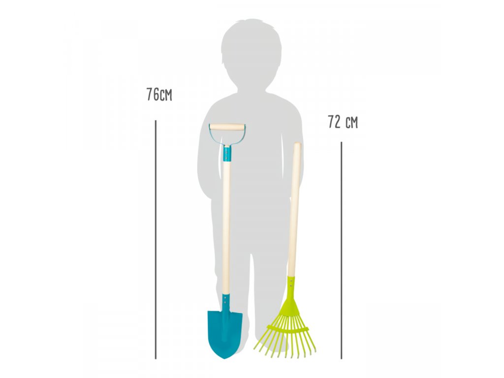 Rozměry: rýč 76x12x3 cm, hrábě 72x21x5 cm