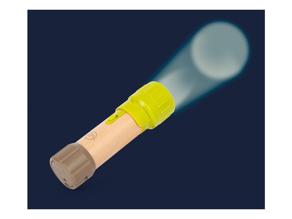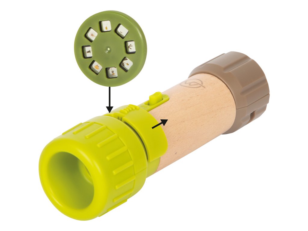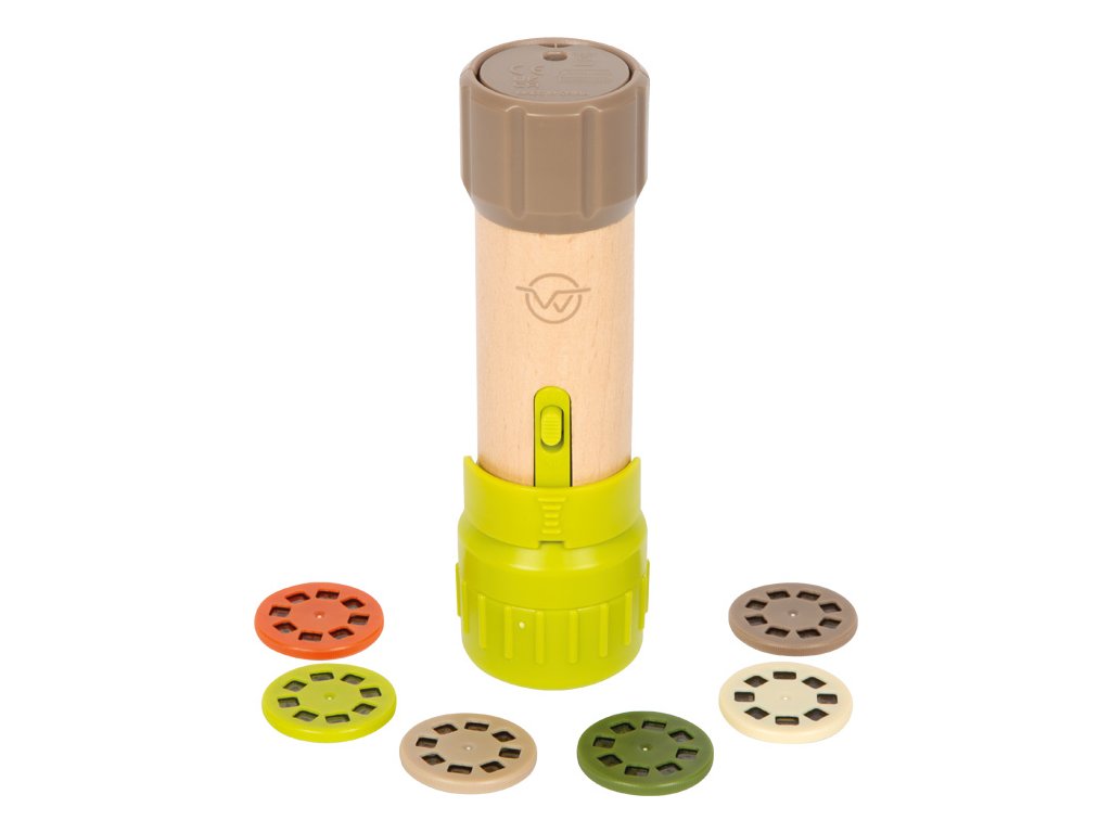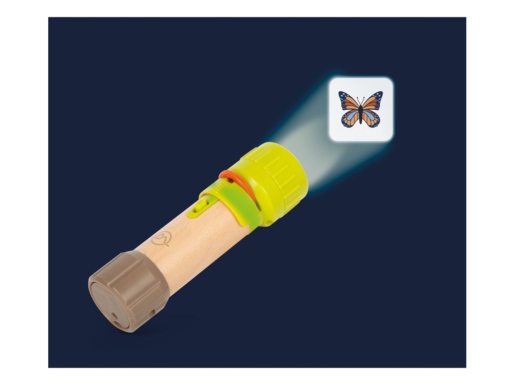 Rozsviťte svět objevů! Tato moderní objevitelská hračka 2 v 1 kombinuje funkci svítilny a obrazového projektoru. Jako svítilna poskytuje světlo ve tmě, zatímco jako projektor zobrazuje poutavý vzdělávací obsah na stěnách, stropech nebo podlahách. Dětská svítilna má ergonomický tvar, je vyrobena z robustního plastu a doplněna rukojetí z přírodního dřeva. Součástí je šest vyměnitelných obrázkových disků, které představují různá vědecká témata – například vývojový cyklus žab, motýlů a pampelišek, listy a plody stromů, zvířata a jejich stopy či souhvězdí. Ideální pro mladé přírodovědce!Díky svítilně 2 v 1 se dětská zvědavost mění v interaktivní zážitek. Děti se hravou formou vizuálně a intuitivně učí o biologii, botanice i astronomii. Vkládání a výměna obrázkových disků navíc podporuje jemnou motoriku.Snadné použití a vysoce kvalitní zpracování dělají z této objevitelské hračky nejen ideálního společníka pro poznávání přírody ve tmě, ale také skvělou volbu do dětského pokoje, na cesty nebo před spaním – zaručeně rozzáří dětem oči! Hlavní vlastnosti: svítilna a projektor 2 v 1obsahuje 6 vyměnitelných disků rukojeť z přírodního dřevarozvíjí vizuální vnímání, představivost a pozorovací schopnostibaterie 2xAAA - nejsou součástí balení