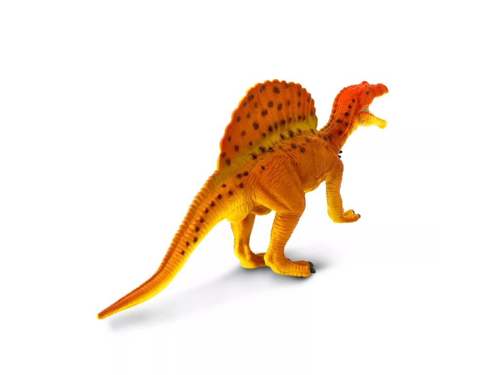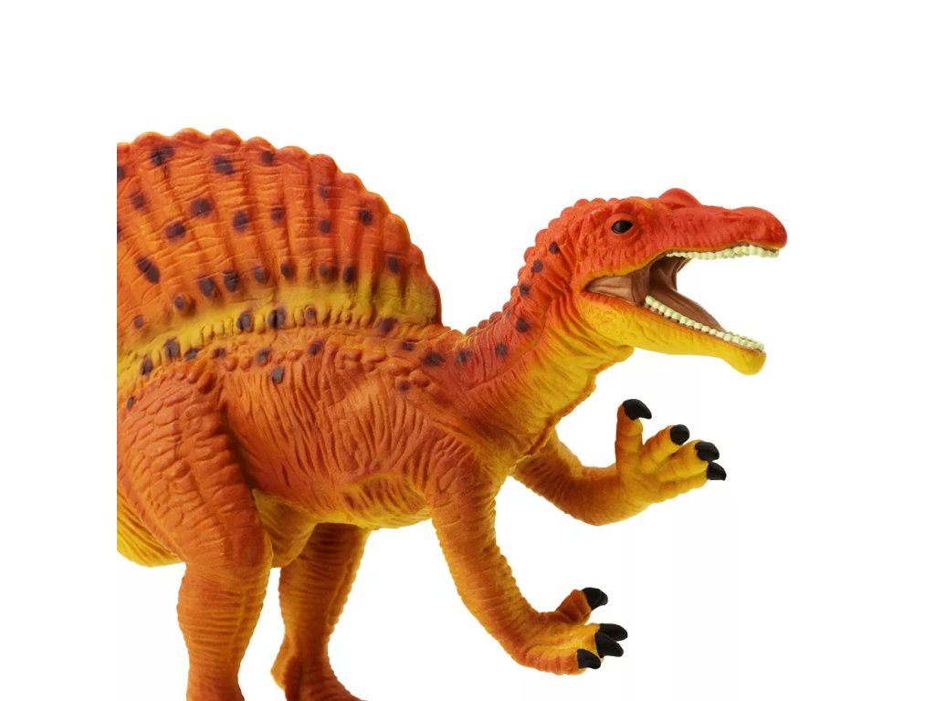 Nikdo s jistotou neví, na co Spinosaurus používal svůj hřeben na hřbetě. Někdo se domnívá, že s ním lákal samice, nebo díky němu reguloval svou tělesnou teplotu. Jeho krásné zbarvení můžete prozkoumat na jeho modelu.