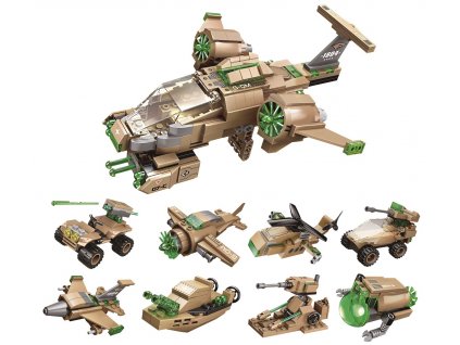 Stavebnice SEVA ARMÁDA - Bitva obsahuje 958 dílků, ze kterých si můžete sestavit např.: vrtulník, tank, jeap s dělem a nebo nosič raket.věkové určení 6+