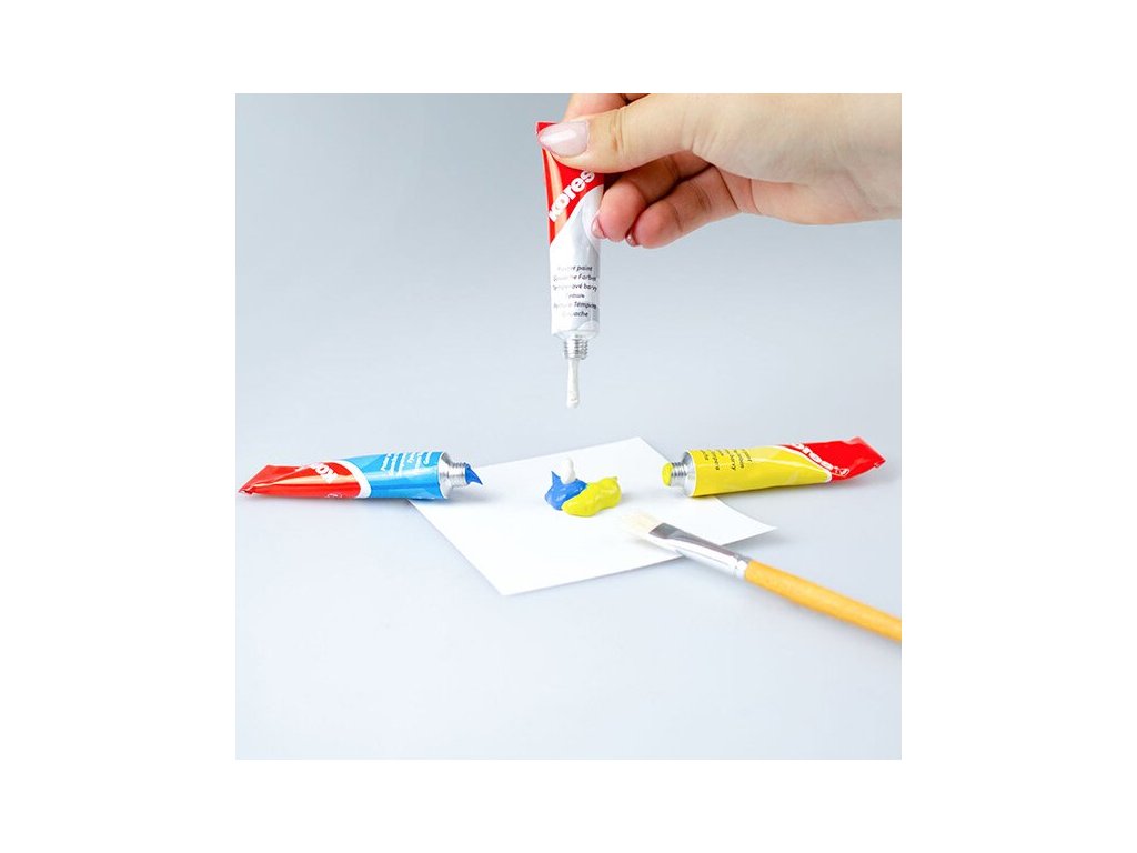 Souprava intenzivních temperových barev s vysokou krycí schopností v hliníkových tubách. Unikátní patentový design - obal lze uchopit jako malířskou paletu a plocha víčka umožňuje míchání jednotlivých barev. Snadno mísitelné a ředitelné vodou.
