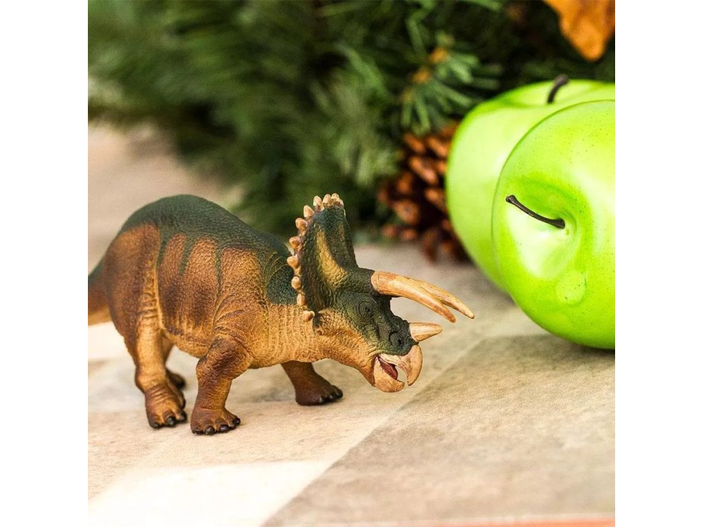 Figurka robustního býložravce s třemi rohy v obličejové části a výrazným týlním štítem z pevné kosti, který sloužil k ochraně před predátory. Stejně jako ostatní figurky od firmy Safari Ltd. je i tato profesionálně tvarovaná a ručně malovaná. Vše detailně propracováno.