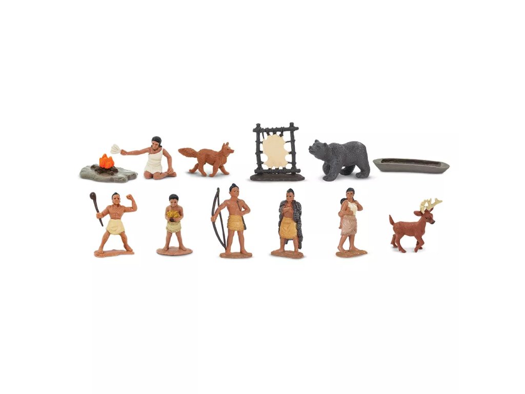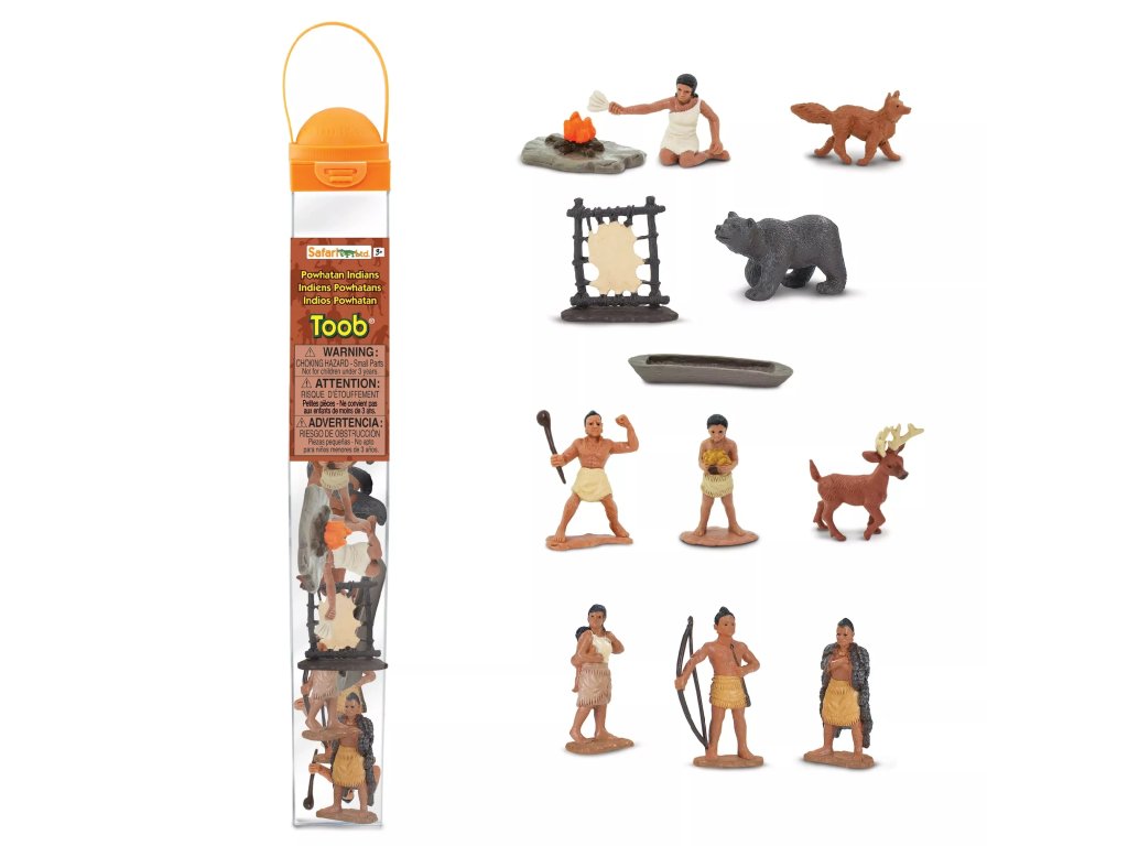 Tuba Indiáni obsahuje 12 figurek inspirovaných severoamerickým indiánským kmenem Powhatan, ze kterého pocházela i známá Pocahontas. Ručně malované figurky vyvedené v živých barvách a propracované do nádherných detailů jsou skvělé nejenom k volné hře na Indiány. Skvěle doplní povídání o americké historii, domorodých kmenech či dobyvatelských cestách počínajících výpravami Kryštofa Kolumba. Tuba Indiáni se hodí také do severoamerického Montessori kontinent boxu.