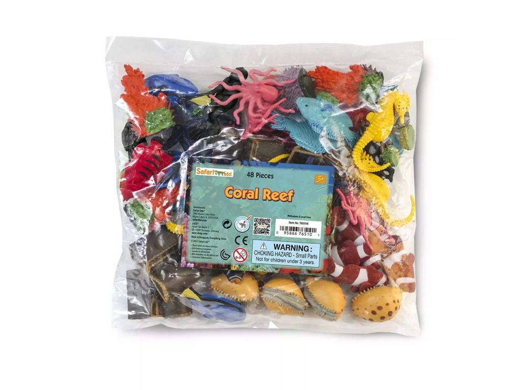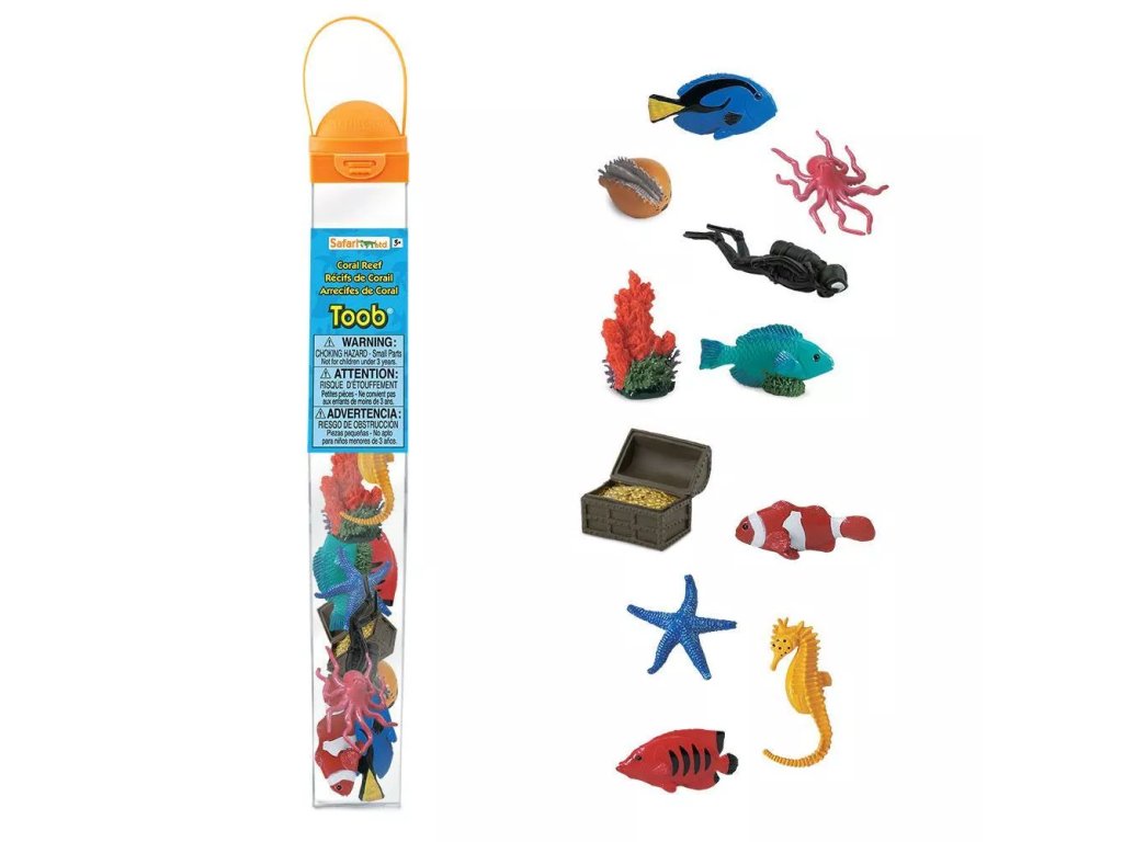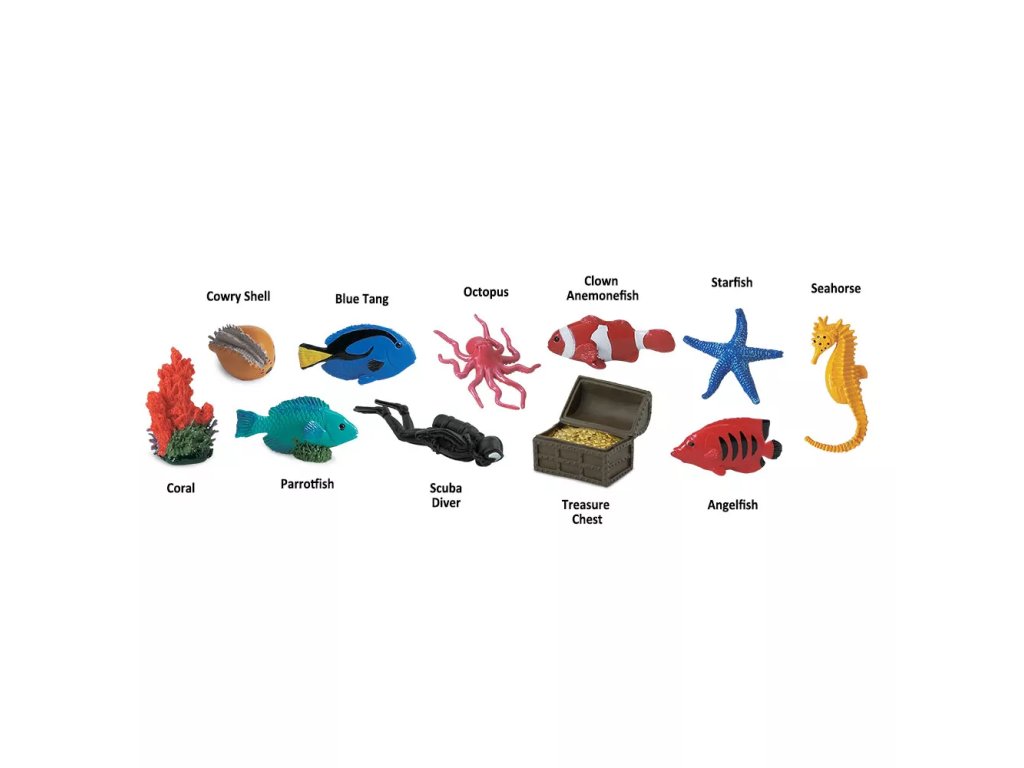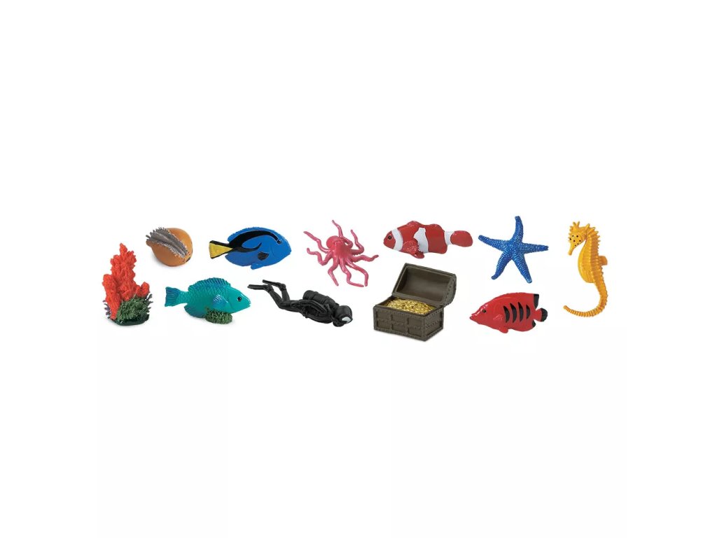 Tuba Korálový útes obsahuje 11 figurek o velikosti 4-7,5 cm a zahrnuje následující: ploskozubec, skalára, bodlok, chobotnice, hvězdice, potápěč, mořský koník, korál, kauri ulita, klaun zdobený a truhla s pokladem.