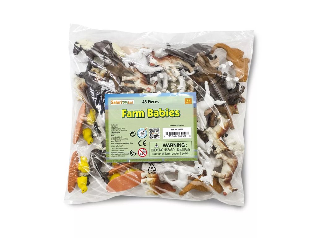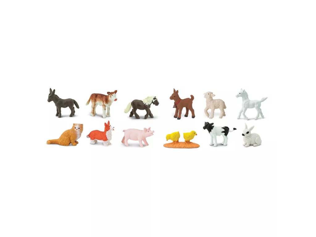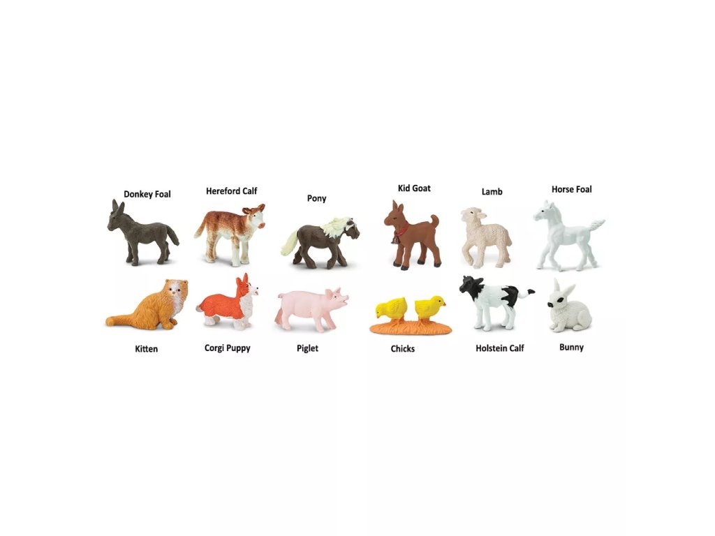 Tuba Mláďata z farmy obsahuje 12 figurek o velikosti 4-7,5 cm a zahrnuje následující mláďata: selátko, hříbě koně, hříbě poníka, oslátko, kuřata, kůzle, holštýnské a herefordské telátko, jehně, štěně corgiho, králíček a kotě.