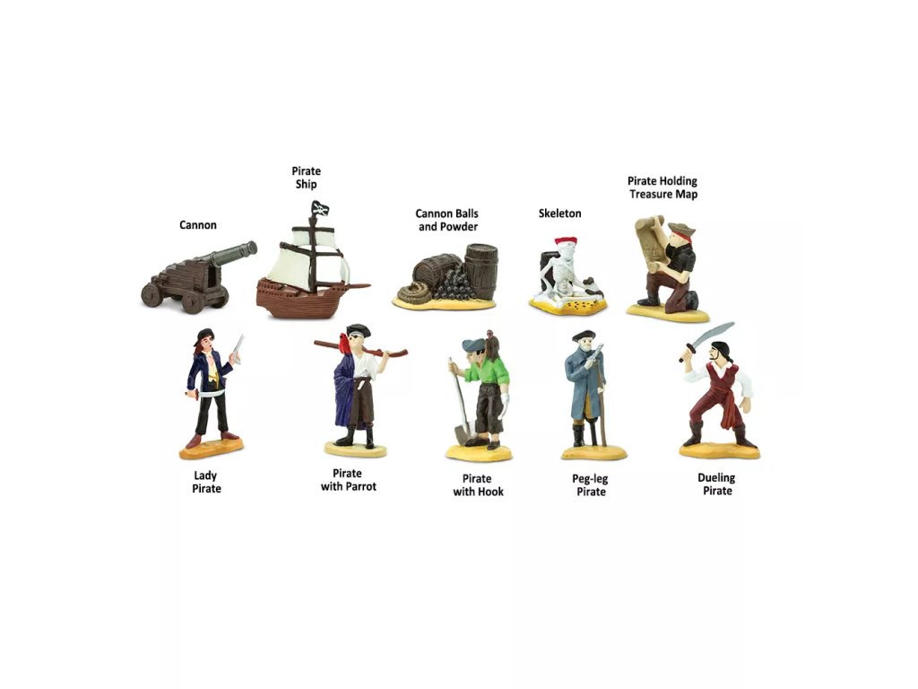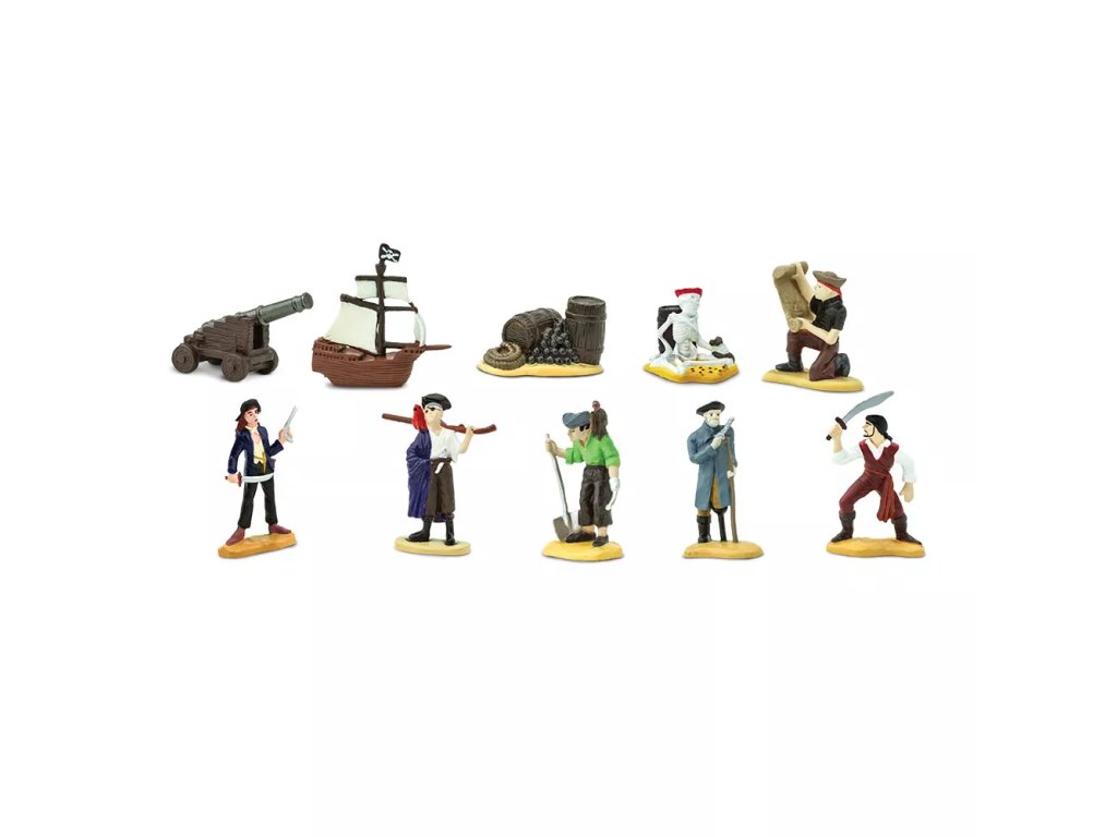 Tuba Piráti obsahuje 10 figurek o velikosti 4-7,5 cm a zahrnuje 6 figurek pirátů vykonávajících různé činnosti, kanón, munici, kostlivce a pirátskou loď.
