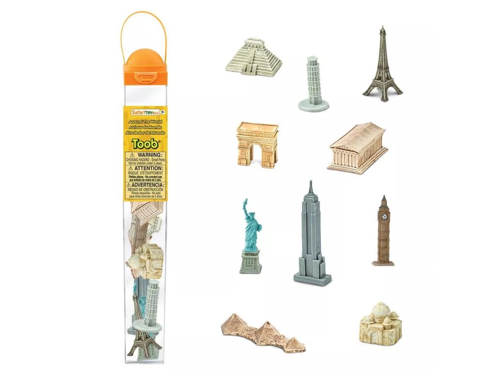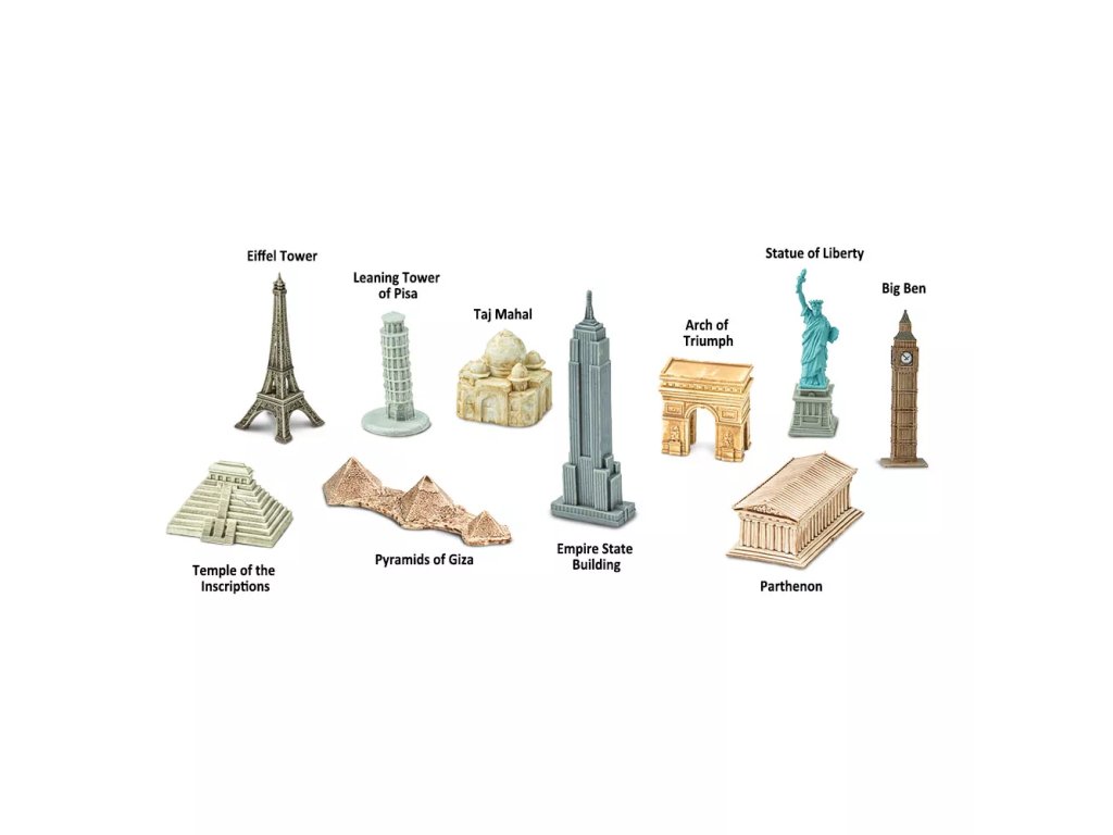 Kolekce Safari Ltd® TOOBS® představuje soubor ručně malovaných miniaturních replik staveb světa, vyrobených s péčí a důrazem na jejich věrnost a přesnost detailů, což dětem umožňuje lépe rozpoznat významné stavby. Názvy v angličtině najdete obvykle na spodní straně figurky.