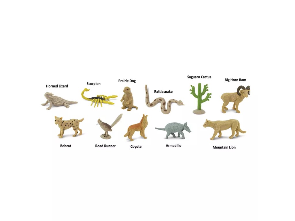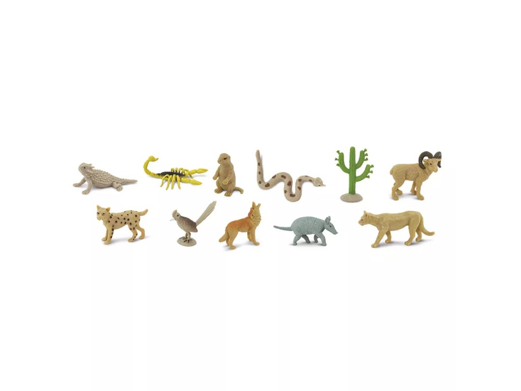 Ručně malované figurky s tematikou života na poušti vyvedené v detailech dokáží dítěti pomoci rozeznat typické znaky pouštní fauny a flory.