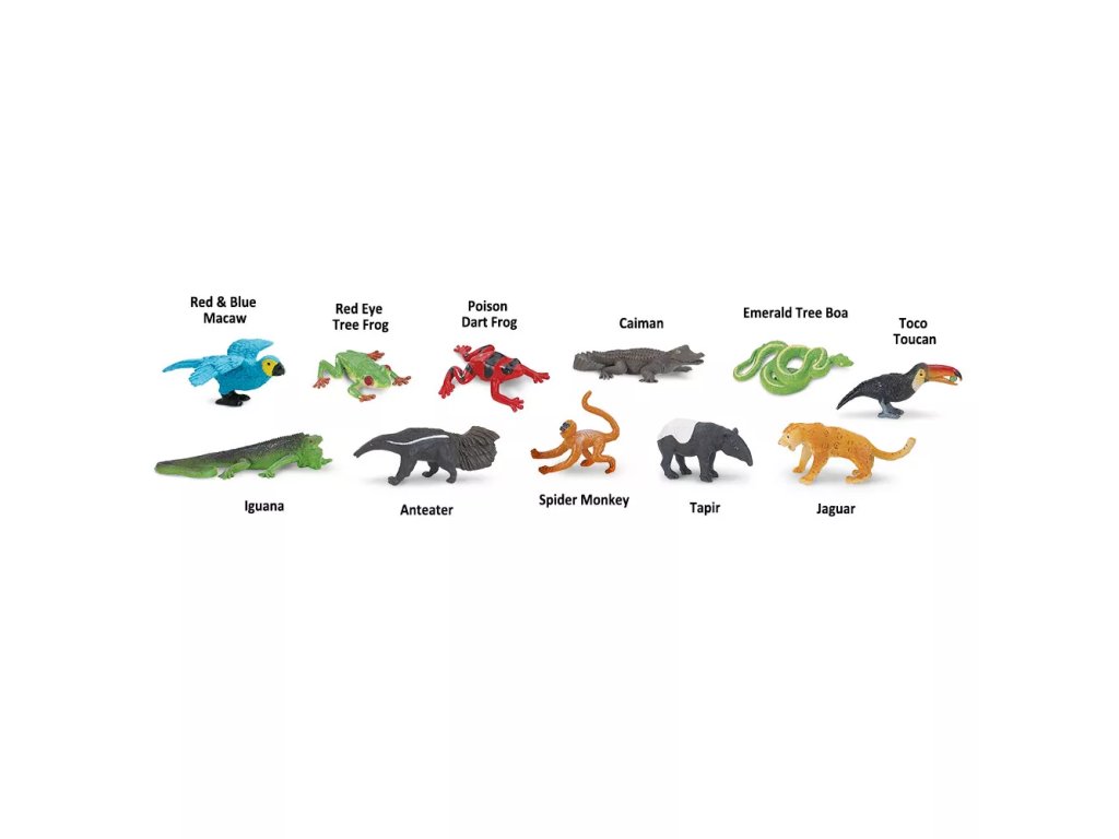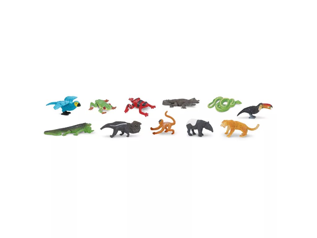 Tuba Život v pralese obsahuje 11 figurek o velikosti 4-7,5 cm a zahrnuje následující zvířata: