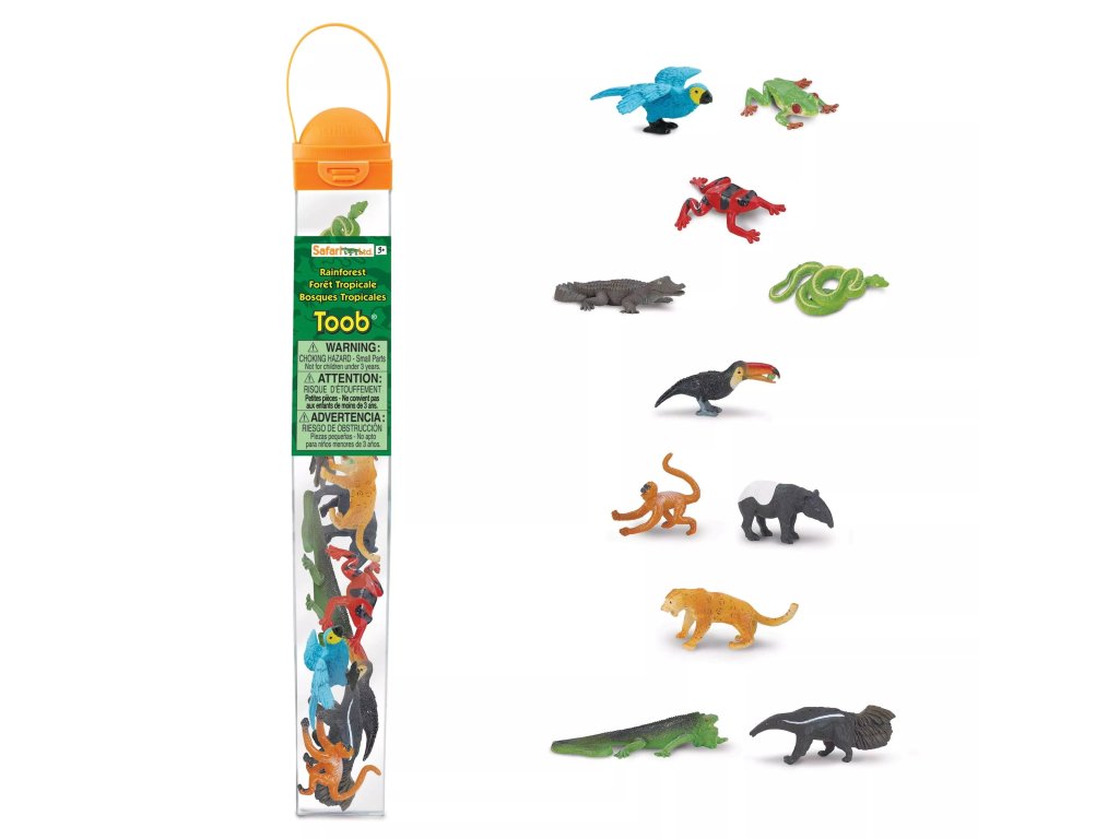 Kolekce Safari Ltd® TOOBS® představuje soubor ručně malovaných miniaturních replik zvířat, vyrobených s péčí a důrazem na jejich věrnost a přesnost detailů, což dětem umožňuje lépe rozpoznat znaky zvířat. Názvy živočichů v angličtině najdete obvykle na břiše figurky.