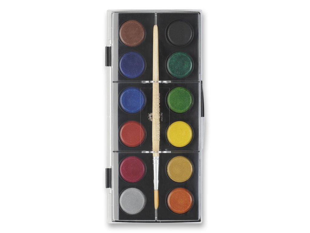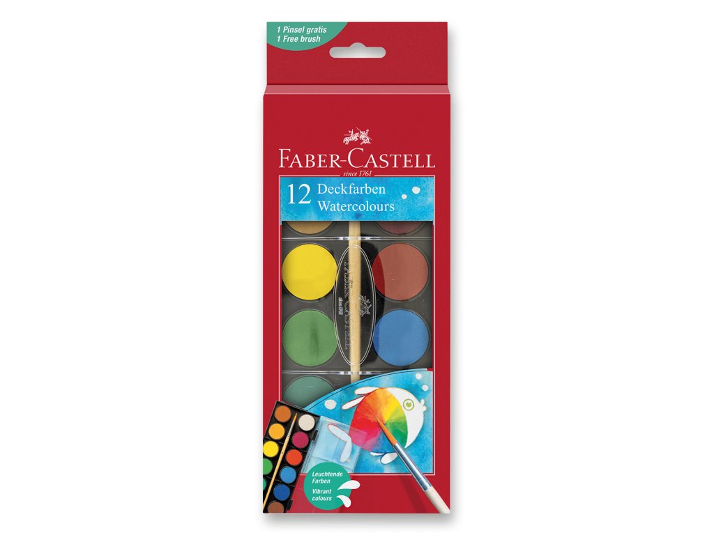 Vodové barvy Faber-Castell - 12 barev, průměr 30 mm