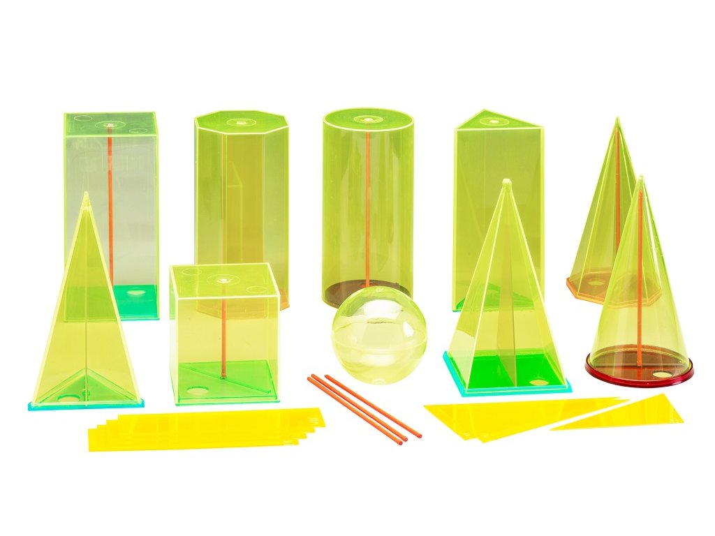 Objevujte svět tvarů hravou formou. Tato velká sada transparentních 3D geometrických těles je ideální nejen jako školní pomůcka, ale také jako zábavná vzdělávací hračka pro zvídavé děti. Díky možnosti tělesa rozložit, vyjmout středovou osu nebo je naplnit vodou či pískem si děti snadno představí, jak funguje objem a prostor. Učení se tak stává přirozenou součástí hry. Průhledné provedení umožňuje nahlédnout dovnitř těles a lépe pochopit jejich strukturu i vzájemné rozdíly. Sada obsahuje 10 velkých geometrických těles o výšce 15 cm s odnímatelnými základnami, středovými osami a průřezy (čtvercový hranol, čtvercová pyramida, krychle, trojúhelníkový hranol, trojúhelníková pyramida, osmiboký hranol, osmiboká pyramida, válec, kužel a koule). Díky pevnému a kvalitnímu zpracování jsou tvary vhodné pro opakované používání doma i ve škole. Sada podporuje rozvoj prostorové představivosti, logického myšlení i praktického pochopení matematických vztahů. Vhodná pro školní výuku, matematické kroužky i domácí vzdělávání. Vyrobeno ze 100% recyklovaného plastu, který je po použití opakovaně recyklovatelný. Baleno v kartonové krabici s návodem. Hlavní vlastnosti: obsahuje celkem 38 dílů9 základen, 9 středových os a 10 velkých geometrických těles a 10 sekcípoměr rozměrů 1 : 2 (hrana 7,5 cm : výška 15 cm) ideální pro výpočty objemu a povrchuplnění vodou či pískem pro pochopení objemu rozvoj prostorové představivosti a logického myšlenívhodné pro školní výuku i domácí vzdělávánívyrobeno v Německu