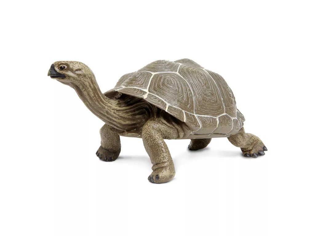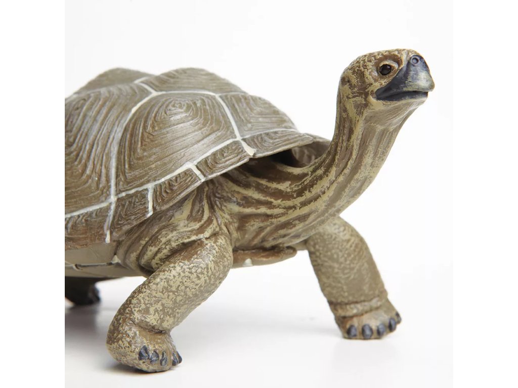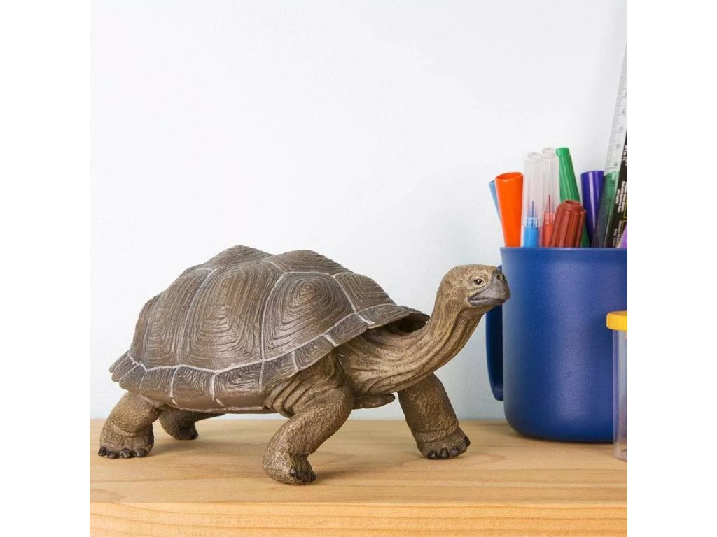Figurka želvy, jejíž velikost umožňuje zachytit detaily ve skořápce, krku a obličeji.Již podle názvu je jasné, že tato želva obřích rozměrů žije na Galapágách neboli Galapážském souostroví nacházející se v Tichém oceánu v blízkosti Ekvádoru. Patří mezi vůbec největší želvy, které žijí na planetě.