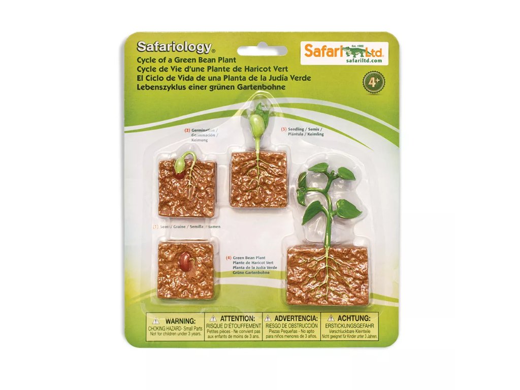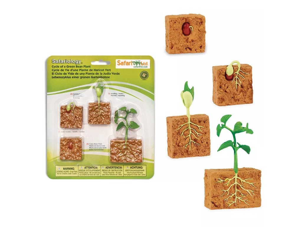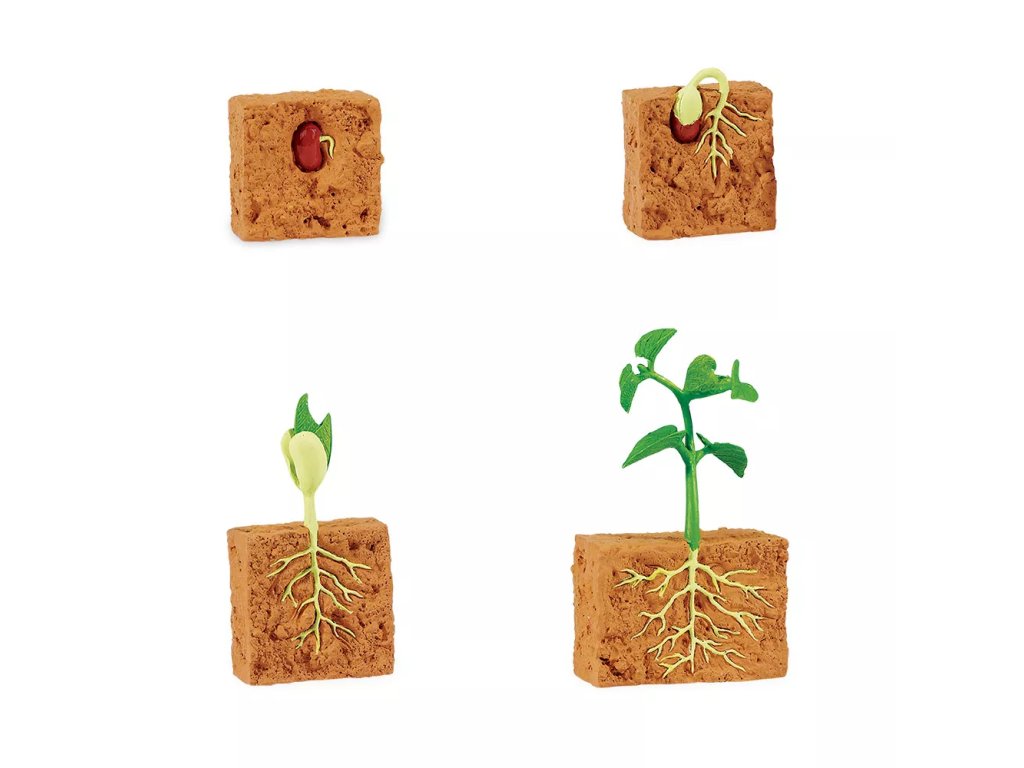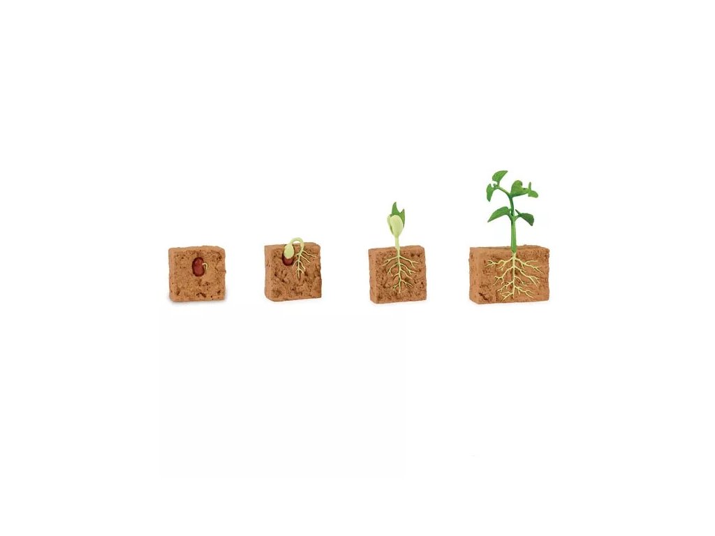 Sada čtyř realistických a detailně propracovaných modelů představuje čtyři hlavní stádia životního cyklu rostliny fazole: semeno, klíčení, sazenici a dospělou rostlinu. Pomůcka jednoduše představuje životní cyklus vývoje rostlin a je možné ji rozšířit tištěnými materiály k tématu životního cyklu fazole.