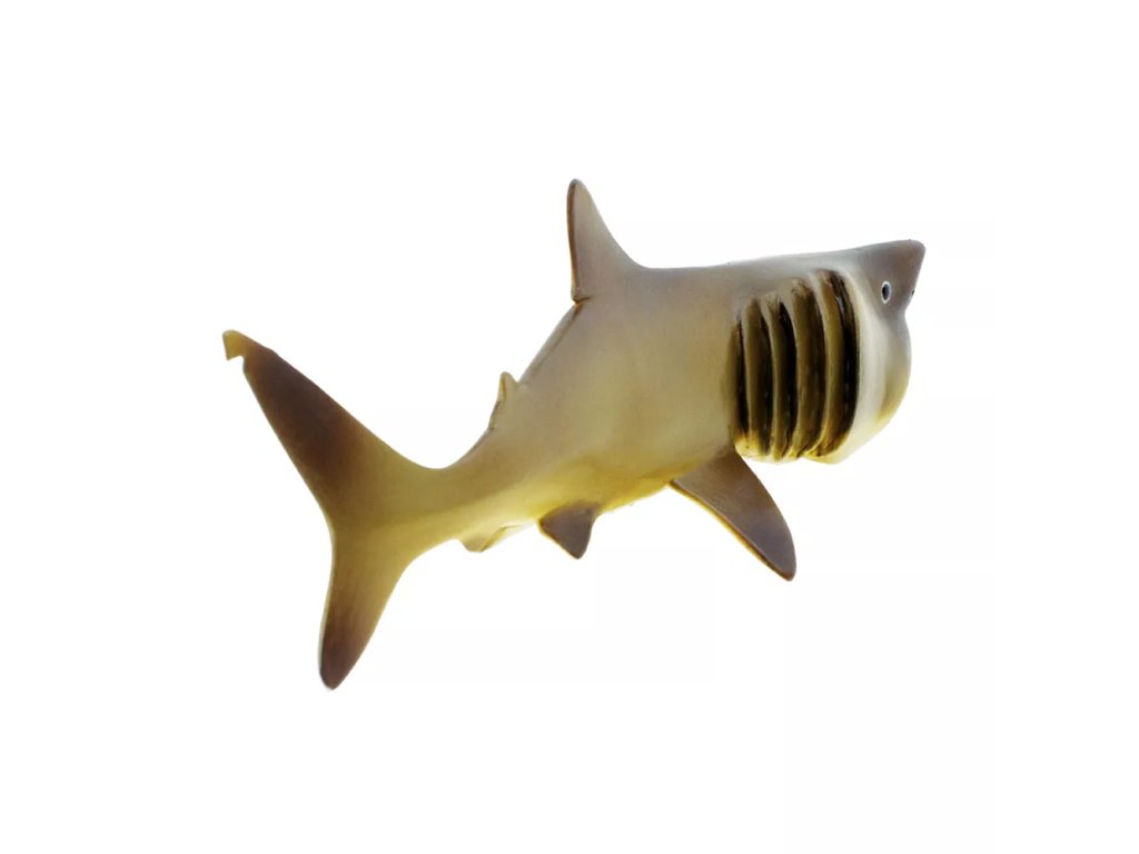 Tento žralok pluje s otevřenou tlamou a chytá potravu. Filtruje si různé mikroorganismy.